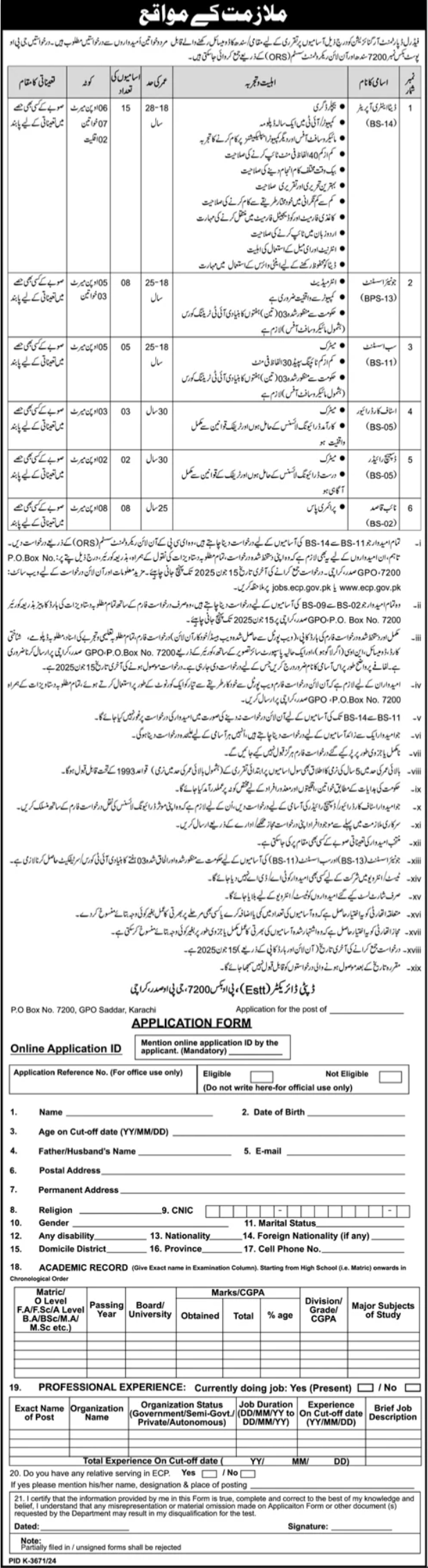 Government Organization jobs advertisement dated about 28 May 2025 in daily Jang Newspaper invites application for the vacant post of assistant, dispatch rider, staff car driver, data entry operator, naib qasid and sub assistant in Karachi, karachi Sindh Pakistan. Preferred Education is Matric, Intermediate, MS, Master and Bachelor etc.