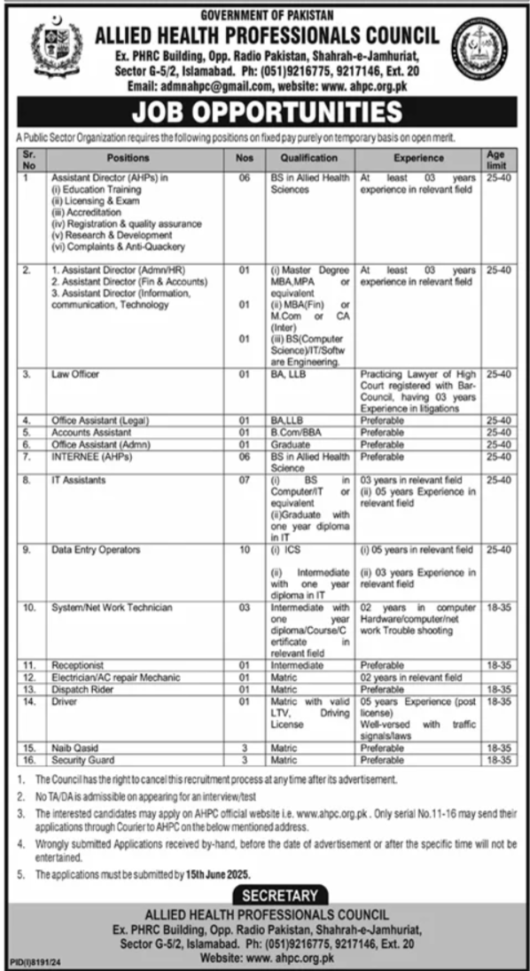 Latest jobs in Allied Health Professionals Council Islamabad Jobs 2025/Apply Now